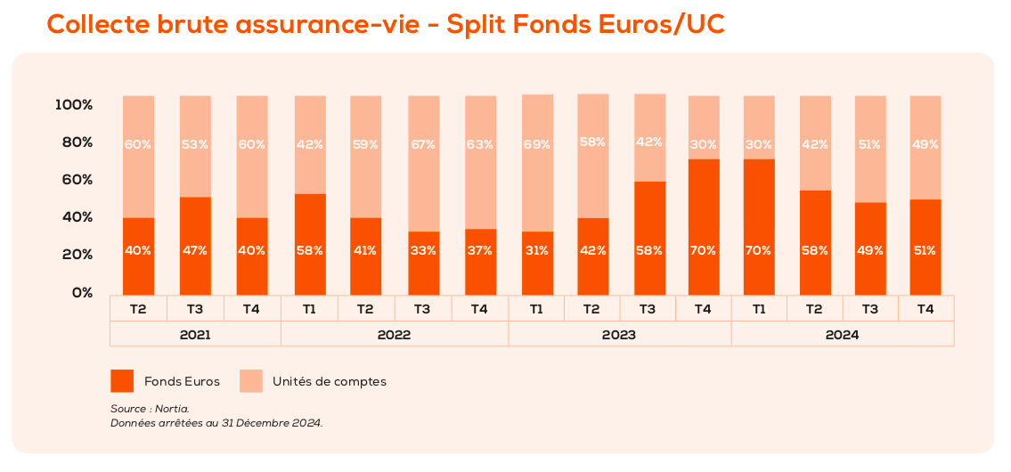 « Entre une assurance-vie marquée par la stabilité des fonds euros et des unités de compte en pleine recomposition, et des comptes-titres où l’obligataire daté et la gestion alternative prennent le pas, 2024 a illustré la manière dont les investisseurs s’adaptent à un environnement complexe. Cette année a mis en lumière des arbitrages précis, où les choix tactiques se sont multipliés pour capter le meilleur rendement dans un contexte de baisse des taux et de regain de volatilité », complète Philippe Parguey, Directeur Général de Nortia.